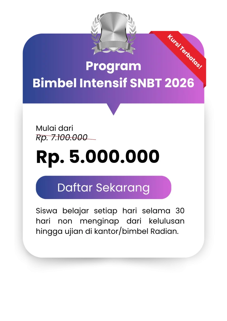 Bimbingan intensif karantina yang dilaksanakan 30 hari menjelang kegiatan UTBK 2026. Kami siap menggaransi siswa/i dan menghantarkan siswa/i lolos ke PTN impian tahun ini.